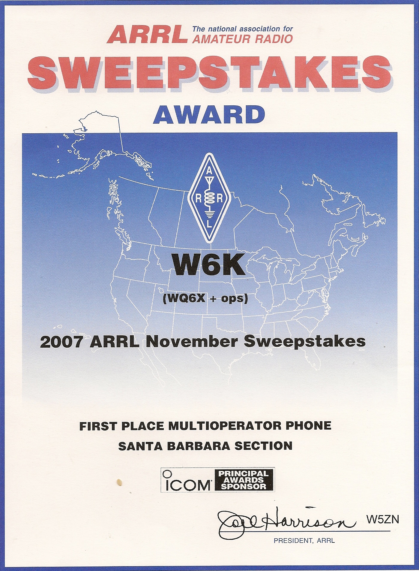 WQ6X operated Sweepstakes from a garage in OJAI CA - Santa Barbara